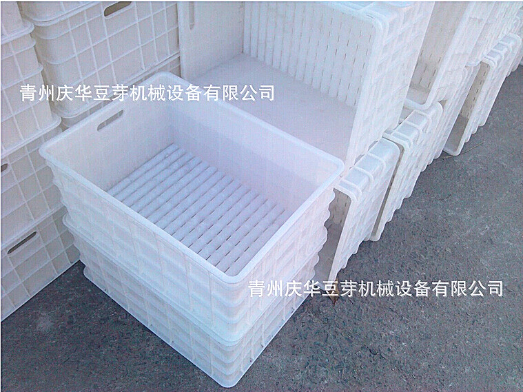 6、豆芽機(jī)結(jié)構(gòu)特點(diǎn)及功能(可根據(jù)客戶需要訂做): 4)周轉(zhuǎn)箱的外徑尺寸:0.61m*0.44m*0.26m(長寬高),特點(diǎn):波浪底,食品級(jí)的環(huán)保LLDPE材料,無味,結(jié)實(shí)不變形,不變色,承載強(qiáng)度大,長條形排水孔,豆芽不堵孔,不積水存水,透水效果好,防止?jié)穸冗^大而導(dǎo)致爛牙。